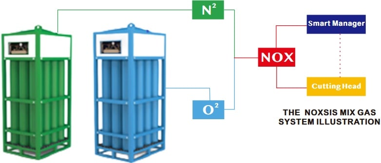 Penta hat mit NOXSIS ein eigenes Mischgassystem entwickelt, das speziell für das Schneiden von Baustahl optimiert ist. Durch das 50/50-Verhältnis von Stickstoff und Sauerstoff werden deutlich höhere Schneidgeschwindigkeiten erreicht, ohne die Schnittqualität zu beeinträchtigen. Das System sorgt für effiziente Prozesse und stabile Ergebnisse auch bei hohen Leistungen.